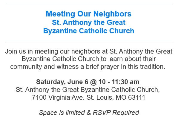 The Archdiocese of St. Louis coordinates the Meeting Our Neighbors program. The program invites different communities of faith into each others’ gathering spaces to share knowledge, experience and hospitality.